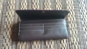 Dompet ini terbuat dari kulit sapi nabati dan dikombinasikan dengan kain tenun