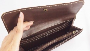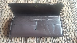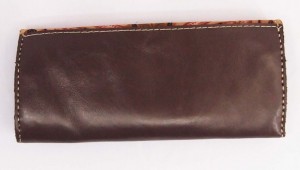 Dompet ini terbuat dari kulit sapi nabati dan dikombinasikan dengan kain batik solo
