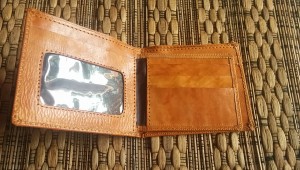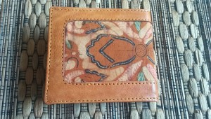 Dompet ini terbuat dari kulit sapi nabati dan dikombinasikan dengan kain batik solo